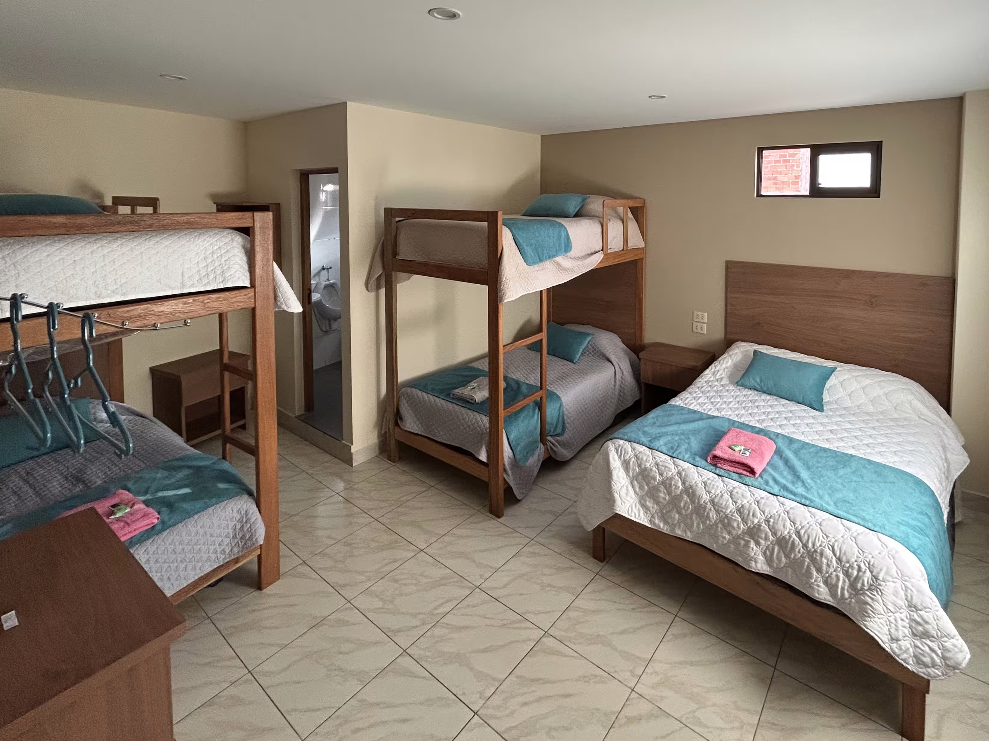 Habitación quíntuple práctica y cómoda, perfecta para grupos numerosos que buscan una estadía conveniente en Sucre.